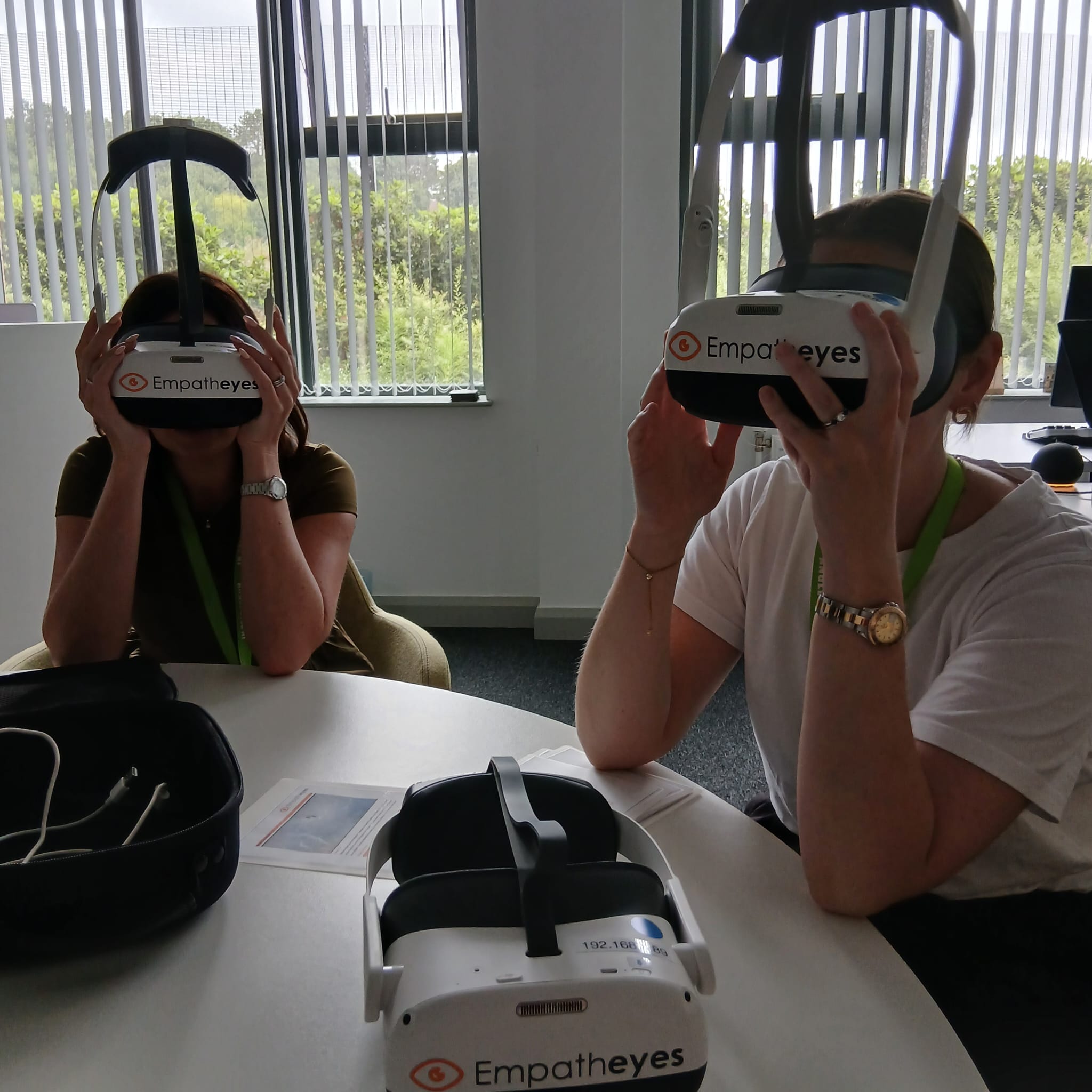 Niamh and Eithne were trained up on #Empatheyes last week with thanks to Angel Eyes NI in Belfast. This VR kit gives a real idea of what visual impairment feels like for our children daily. How it affects them in the classroom, the playground and out and about in town. This immersive experience has proven a game changer for those supporting children and young people with vision loss for Angel Eyes NI. Really understanding the impact leads to meaningful solutions and that’s what we need.