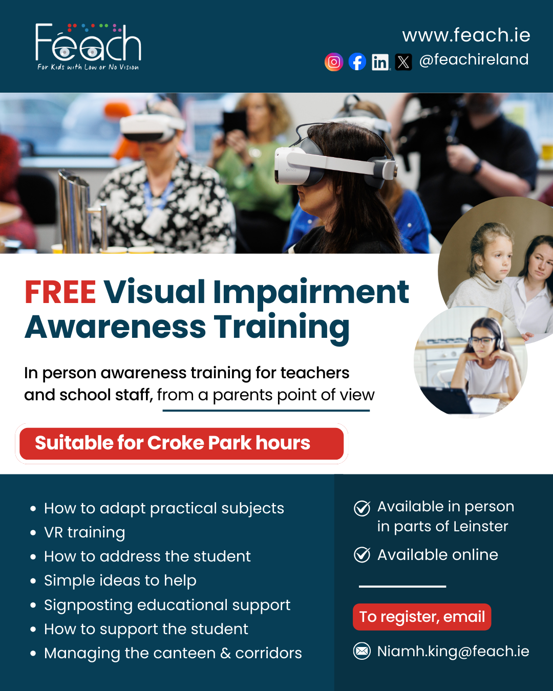 Féach offers in person or online training for school staff who have a new visually impaired pupil in their class or school.