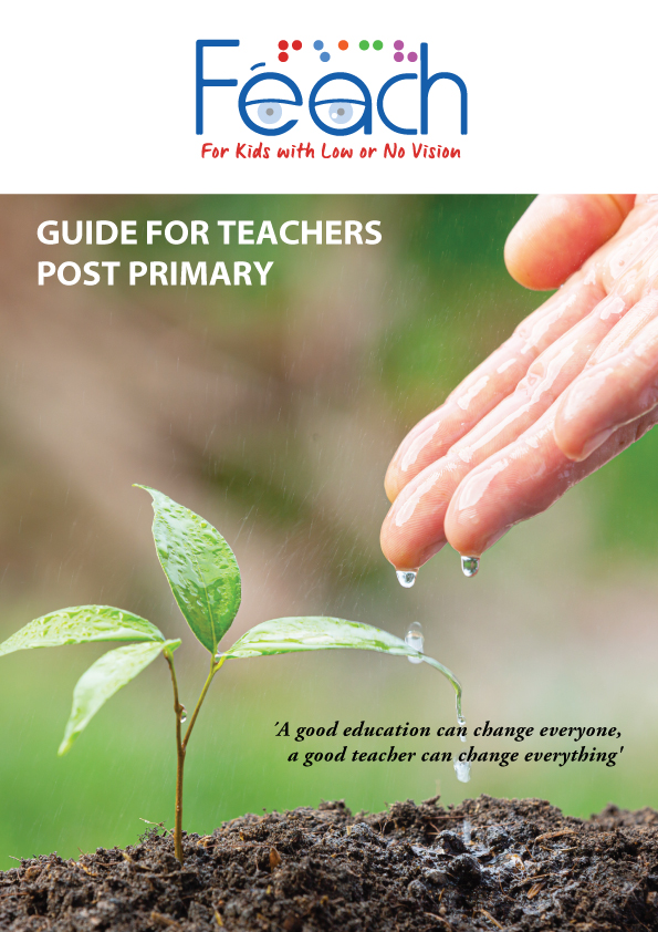 Why should every school have to re-invent the wheel each time they get a low vision student? We have compiled all the information you need from schools and teachers that have gone before you. This comprehensive guide discusses RACE, information for individual subject teachers, ECC, incidental learning and more. Email info@feach.ie for a digital or hard copy.