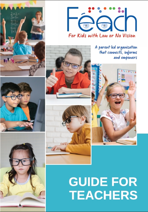 In 2021, knowing that schools were desperate for knowledge on how to adapt and accommodate their blind and visually impaired pupils, Féach wrote this guide using parents and teachers experiences and best practices in mind. This was our 1st guide for schools and has been very successful, explaining to teachers, principals and SNAs practical advice, the expanded core curriculum, additional skills needed and ways to support the pupil. Email info@feach.ie for a digital or hard copy.